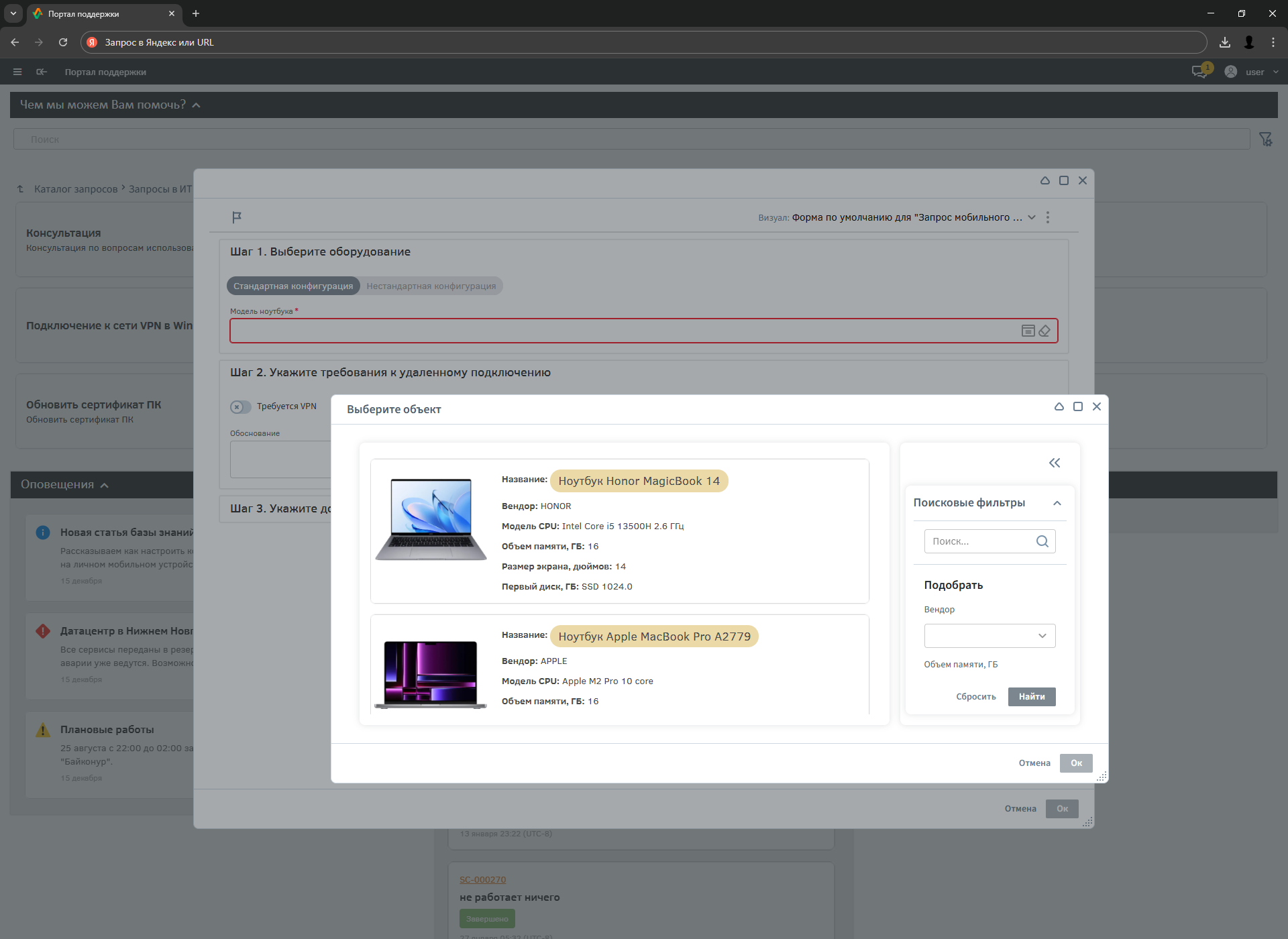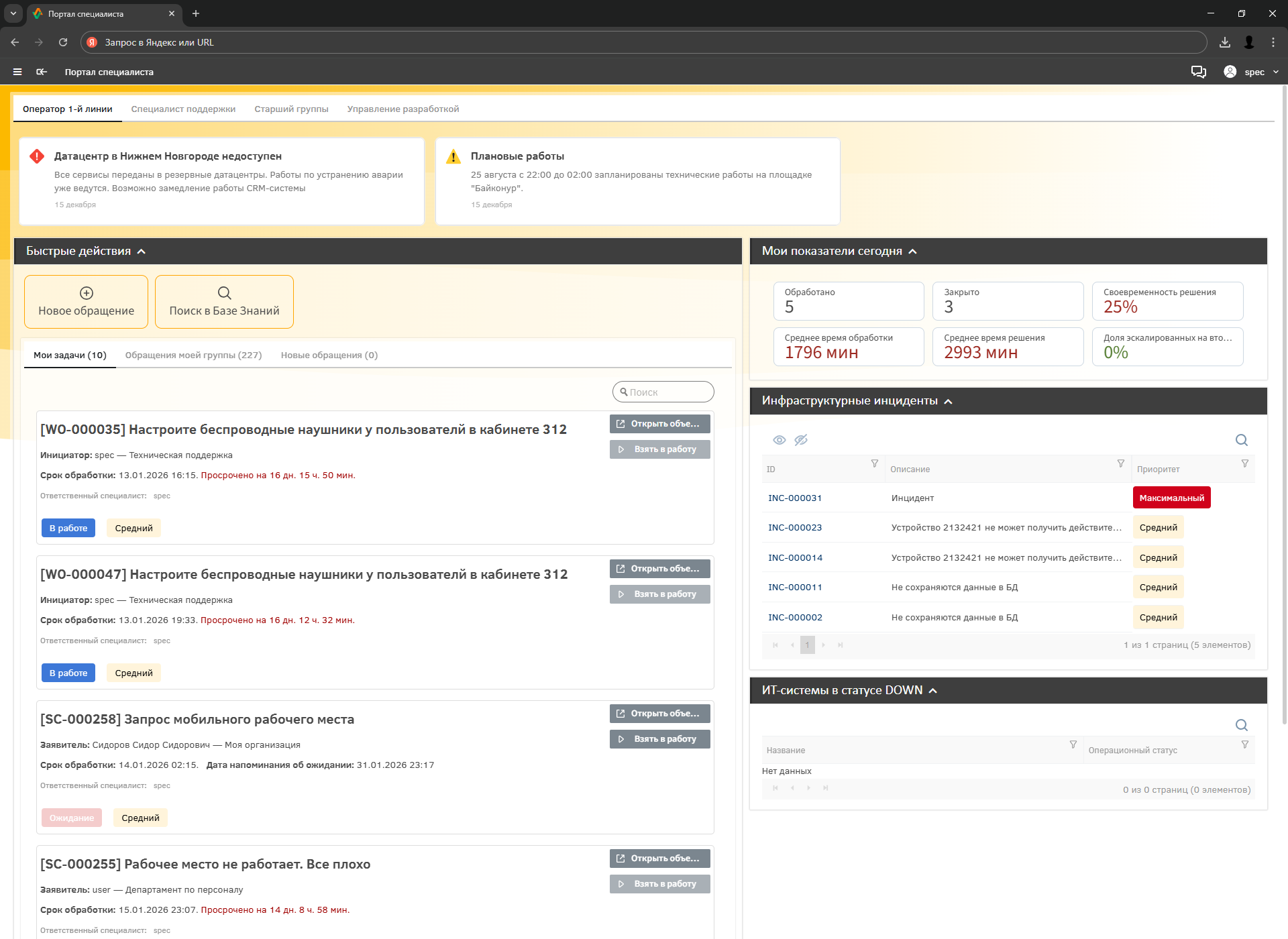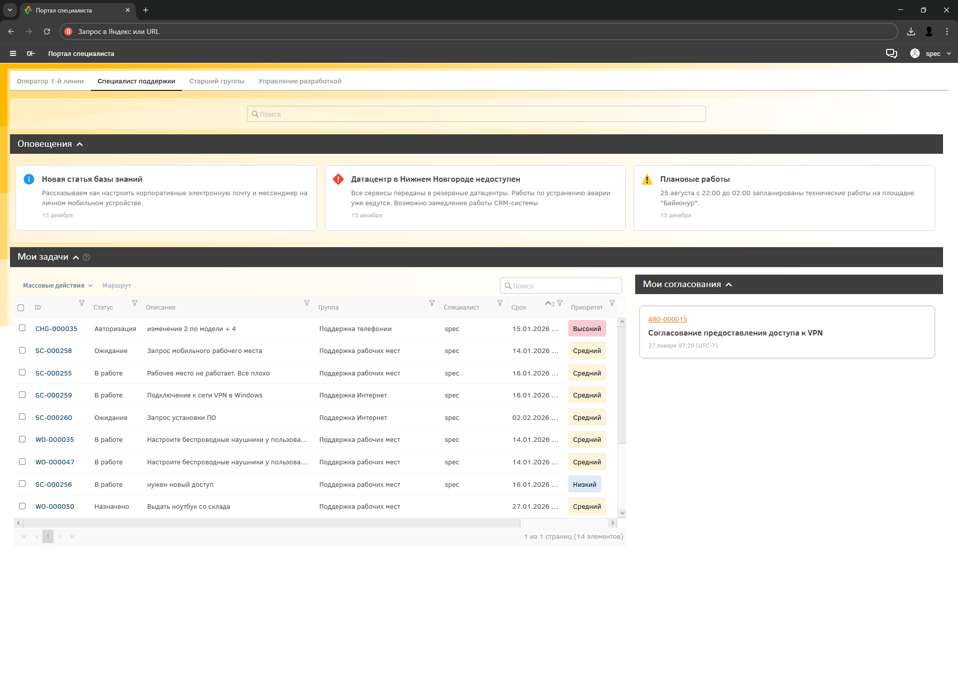 Портал оператора первой линии в ITSM-системе Altevics